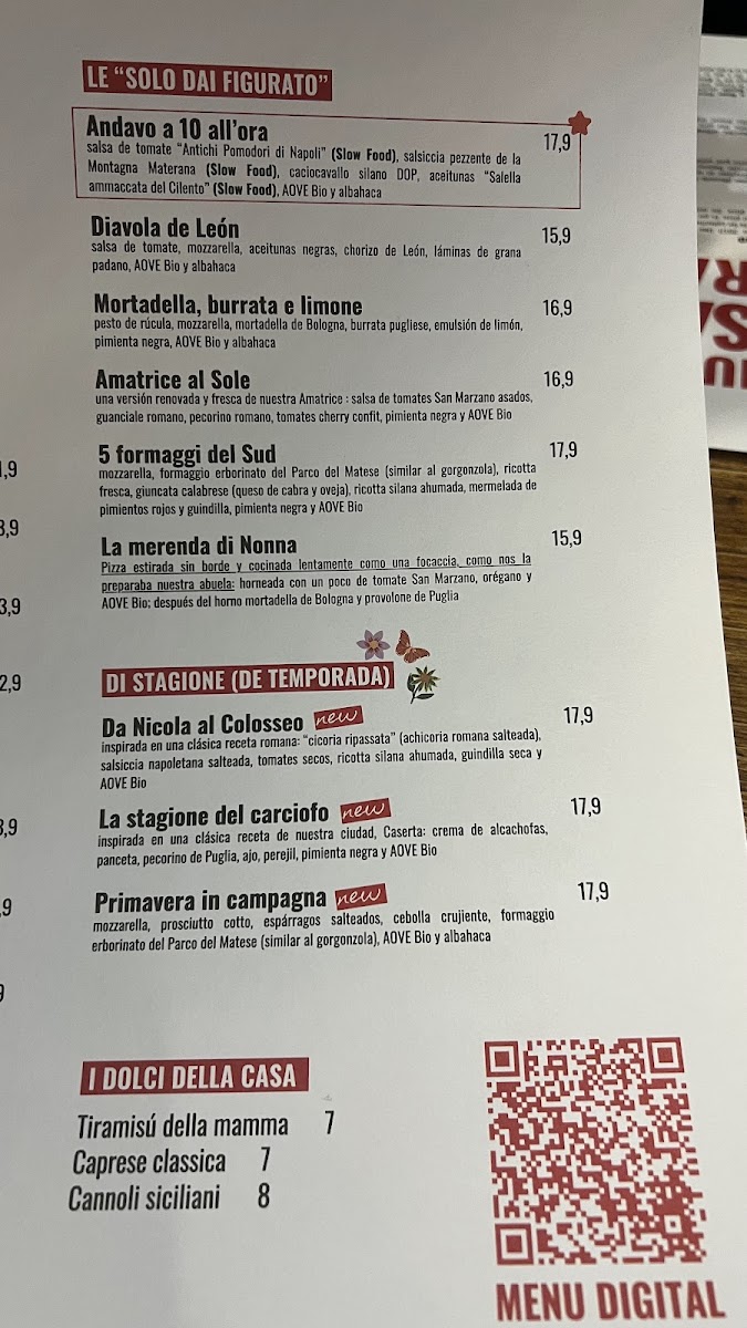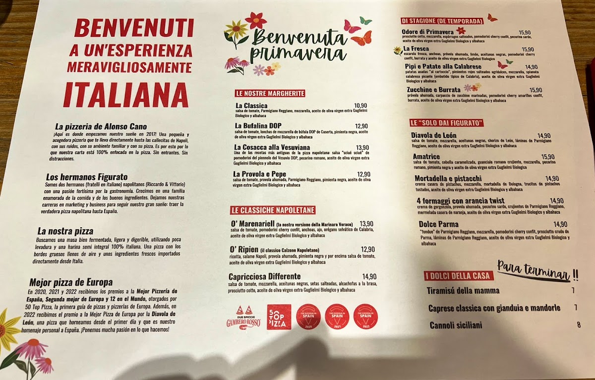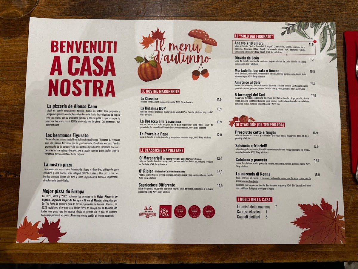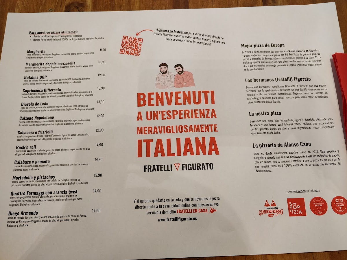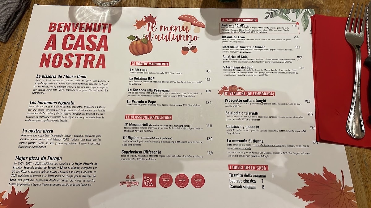 Welcome to Pizzeria Fratelli Figurato, a hidden gem located at C. de Alonso Cano in Chamberi, Madrid. Renowned for its authentic and award-winning pizzas, this intimate eatery is a must-visit for pizza aficionados. The menu is a carefully curated combination of traditional flavors and fresh ingredients, showcasing their standout pies like the Spicy Capricciosa and the classic Mortadella, Burrata e Pomodori Secchi. Beyond the savory delights, don’t miss the Tiramisú Della Mamma – a sweet finishing touch that’s as authentic as it gets.